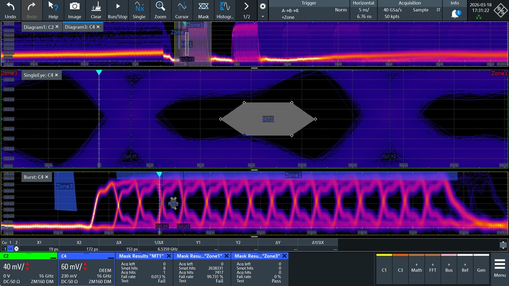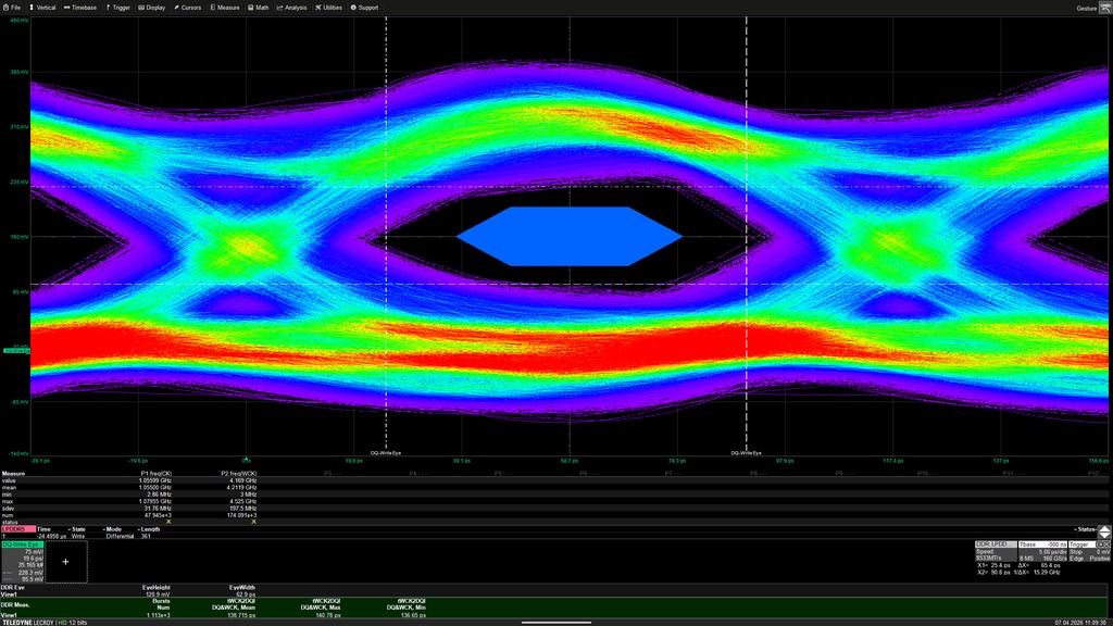 So far the interposers have been used for datarates up to 8.44Gb/s (see screenshots below). Currently we are working on 9600MT/s examples and DDR6/LPDDR6 interposers.